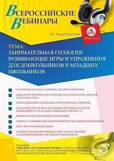 Вебинар Занимательная геология: развивающие игры и упражнения для дошкольников и младших школьников