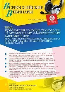 Вебинар Здоровьесберегающие технологии на музыкальных и физкультурных занятиях в ДОО: игротренинг, ритмопластика, танцевальная и игровая терапии, психогимнастика, нейройога и др.
