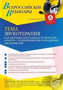 Вебинар Звукотерапия как здоровьесберегающая технология в работе с дошкольниками и младшими школьниками
